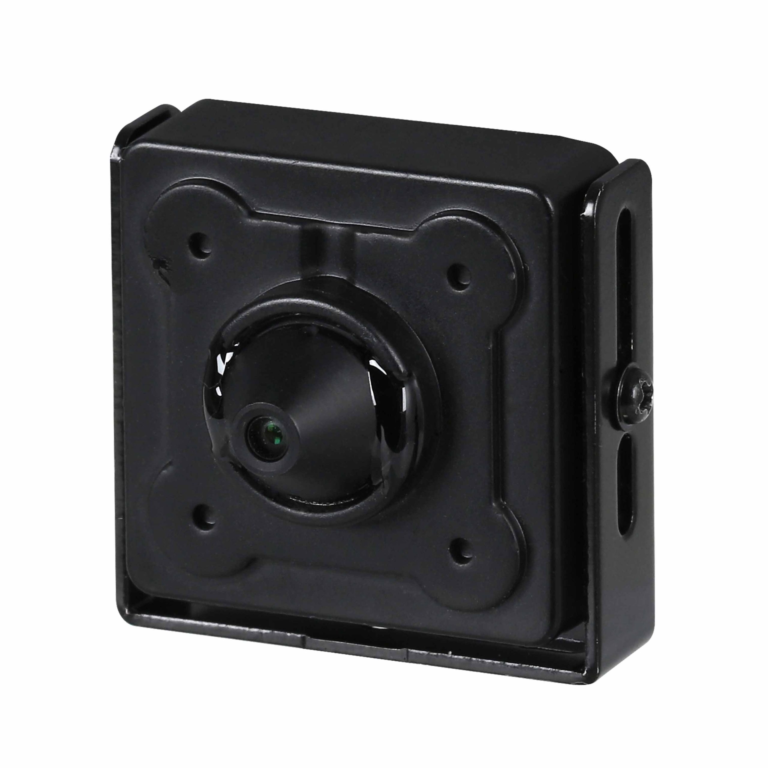 Opremljena je 2.8 mm pinhole objektivom (F2.4) sa vidnim uglom od 103°, što omogućava široko pokrivanje prostora uz minimalnu vidljivost same kamere. Po potrebi dostupna je i verzija sa 3.6 mm objektivom za uži ugao posmatranja.