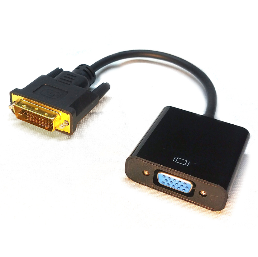 DVI na VGA konverter sa kablom. Koristi se svuda gde je potrebno DVI signal konvertovati na VGA i kao takav prikazati na nekom starijem monitoru ili televizoru. Najcesce se koristi u sistemima video nadzora.