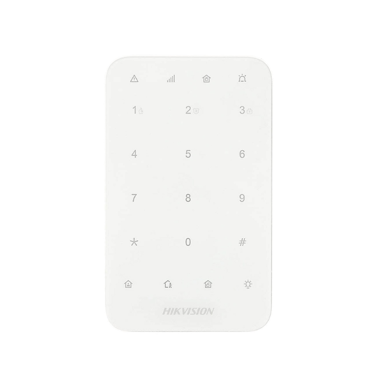 HIKVISION DS-PK1-E-WE bežična tastatura. Prodaje se zasebno i kao takva ne predstavlja funkcionalnu celinu. Preko aplikacije pridodaje se HikVision bežičnoj alarmnoj centrali. Ceo koncept ovog alarmnog sistema je zamišljen tako da vam za ugradnju nisu potrebni kablovi i bušenje rupa, već je sve bežično i vrlo jednostavno za povezivanje. Napajanje čine 4 AA baterije koje se lako menjaju sa zadnje strane. Za razliku od Paradox sistema, HikVision alarmne centrale su jednostavne za instalaciju u hobi varijanti. Tastatura komunicira sa centralom na 868 Mhz i ima AES-128 enkripciju kao i veliki domet. Stranicu proizvođača za ovaj proizvod možete pogledati ovde.