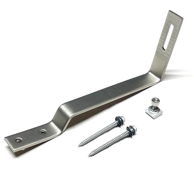 Specijalno izradjen drzač šine (nosača) solarnog panela. Koristi se za montažu na krov prekriven crepom. Napravljen od pocinkovanog čeličnog lima debljine 5 mm sa perforiranim rupama. U kompletu se nalazi i klin sa imbus šrafom, koji lako uleže u žleb na šini i čini čvrst spoj šine i kuke. U kompletu sa kukom doijate i set šrafova za zavrtanje u drvenu gredu. Model kuke NSBP-SSH-02 je napravljen iz jednog komada i ima veću dužinu od kuke model 1 i kuke model 3. Žleb na gornjem delu kuke je napravljen tako da se šina može kretati gore ili dole ako libela to zahteva. Kuka sa kompletom šrafova predstavlja funkcionalnu celinu i spremna je da prihvati šinu. Montaža kuke je izuzetno jednostavna i laka, i zahteva minimalan alat za pravilnu montažu. Detaljna uputstva za montažu kao i spisak elemenata možete pronaći u katalogu ispod tabele.
