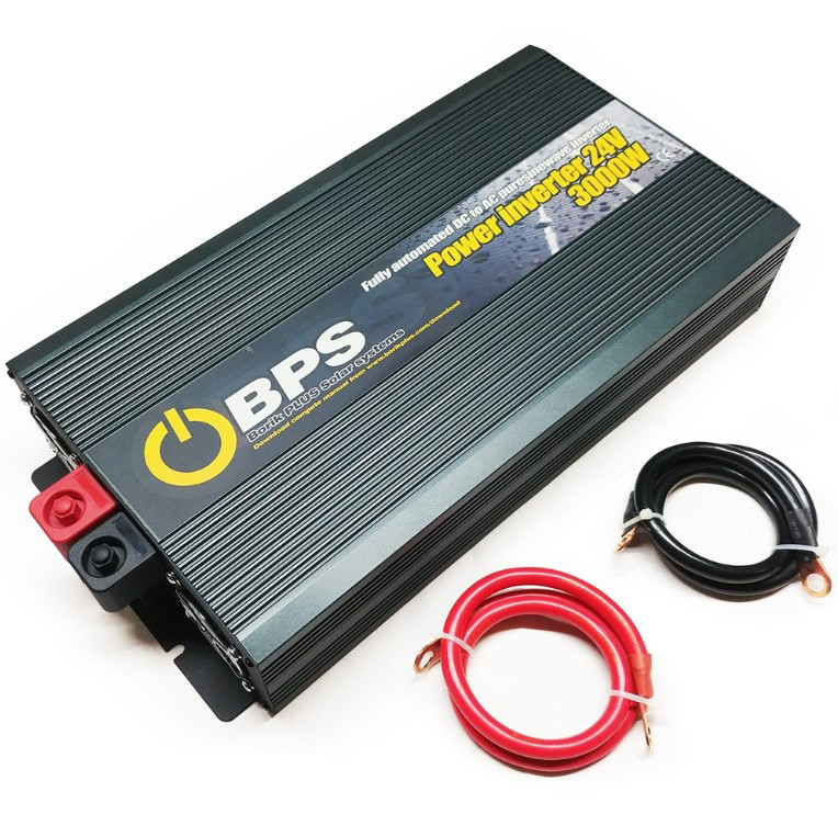 Čist sinusni inverter sa 24V na 230V, snage 3000W (6000W u piku). Idealan za upotrebu u manjim i srednjim solarnim sistemima. Sinusni oblik mu omogućava da bez ikakvih problema napaja bilo kakav uređaj. Za hlađenje poseduje dva snažna ventilatora koji obezbedjuju odlican protok vazduha unutar uredjaja. Budite svesni da što je DC napon manji, poprečni presek provodnika mora biti veći. Ovaj inverter kao i svaki drugi nije preporučljivo konstatno opteretiti preko 80%. Inverter treba da bude pozicioniran što bliže baterijama i da bude u što je moguće hladnijem prostoru. Inverter ne sme biti izložen direktnom Sunčevom svetlu ili kiši. Oko invertera mora postojati dovoljno prostora za hlađenje i strujanje vazduha.