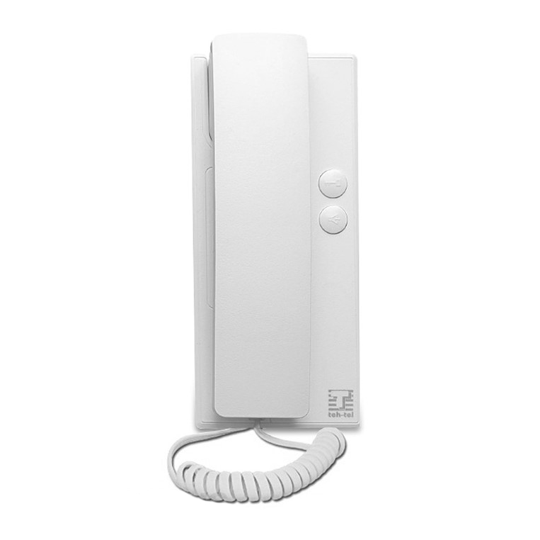 Slušalica sa tasterom za otvaranje vrata model Q2. Bele boje i elegantnog izgleda. Poseduje glasan zvučnik i osetljiv mikrofon. Može se koristiti i za TEH-TEL T2 sistem kao i za TEH-TEL video sistem 5+N. Slušalica se povezuje bez polarizacije.