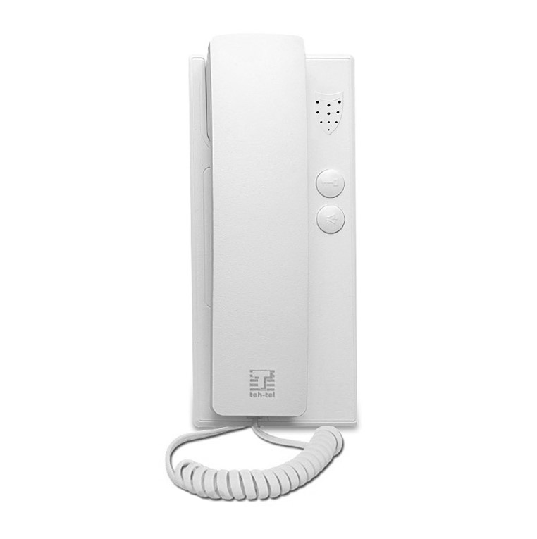 Slušalica sa tasterom za otvaranje vrata model UNI. Bele boje i elegantnog izgleda. Poseduje glasan zvučnik i osetljiv mikrofon. Može se koristiti za analogne 4+n i 1+n sisteme različitih proizvođača.